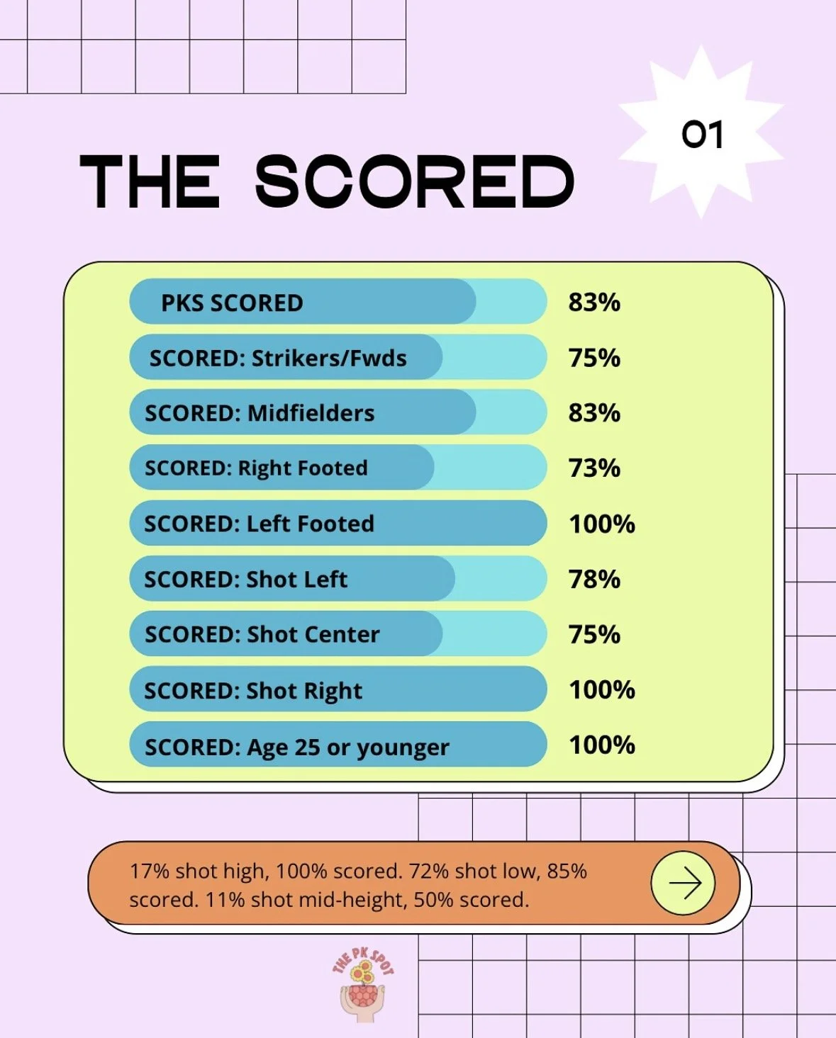 All the stats represent the PKs scored -broken down by each category