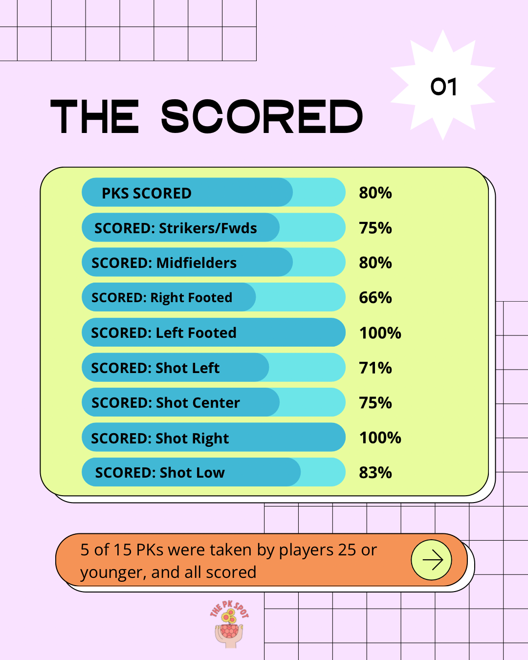 All the stats represent the PKs scored throughout the tournament -broken down by each category