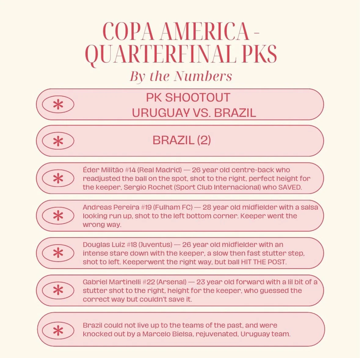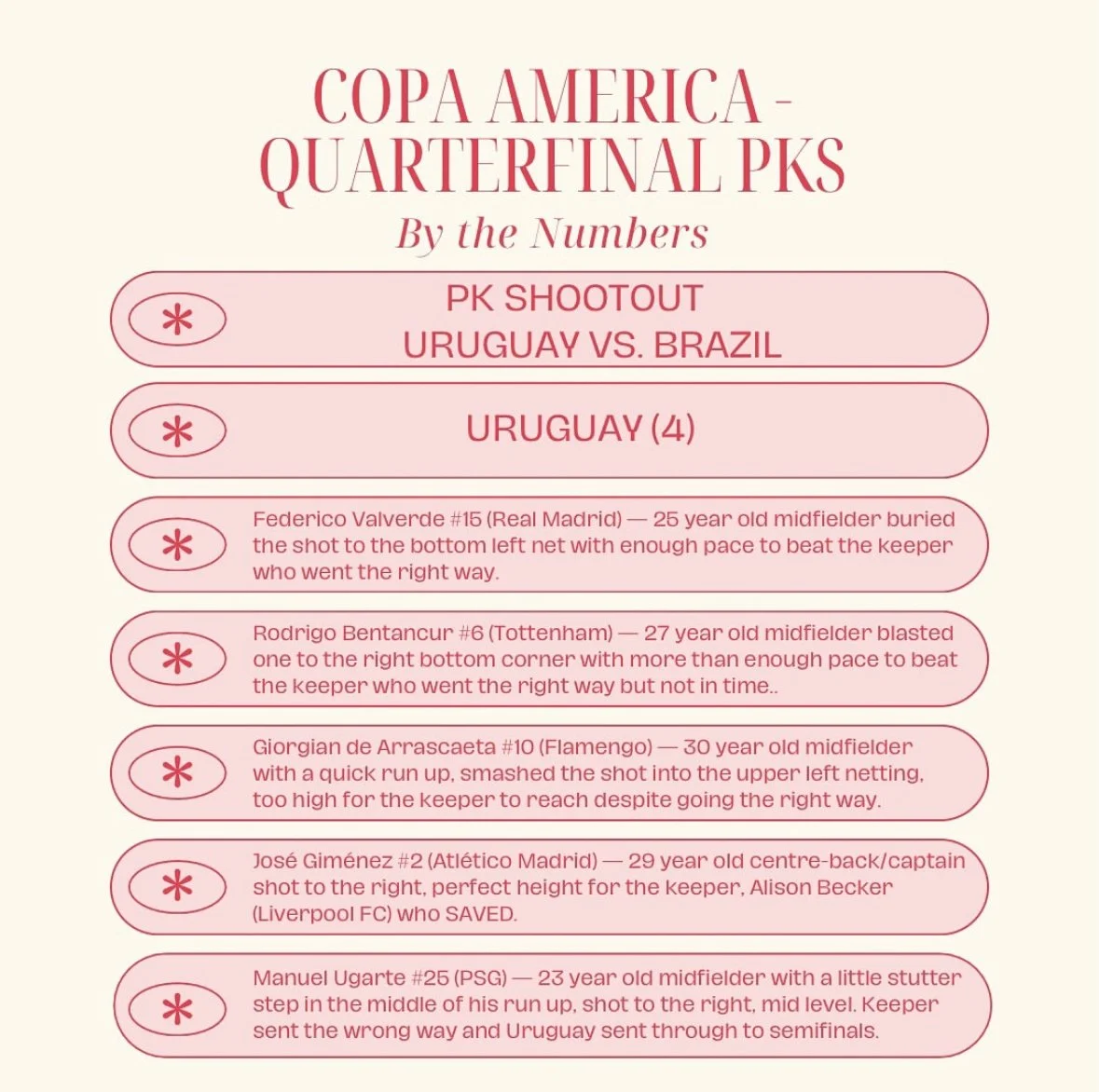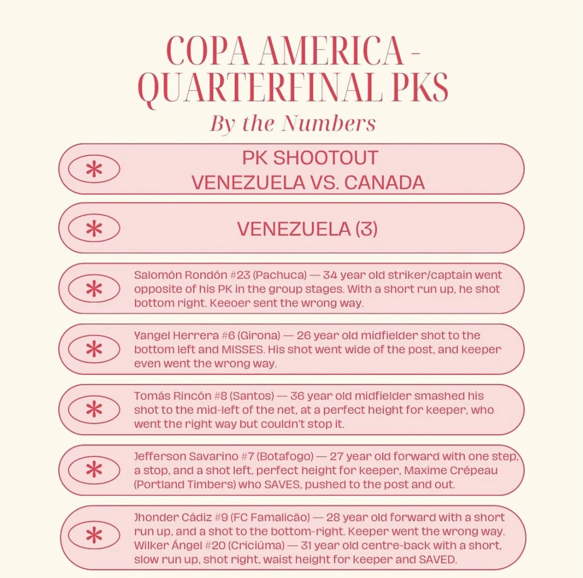 South America’s elite - We highlighted all PK stats, but most notably, highlighted the PK takers to help South American players get the notary and respect they deserve.