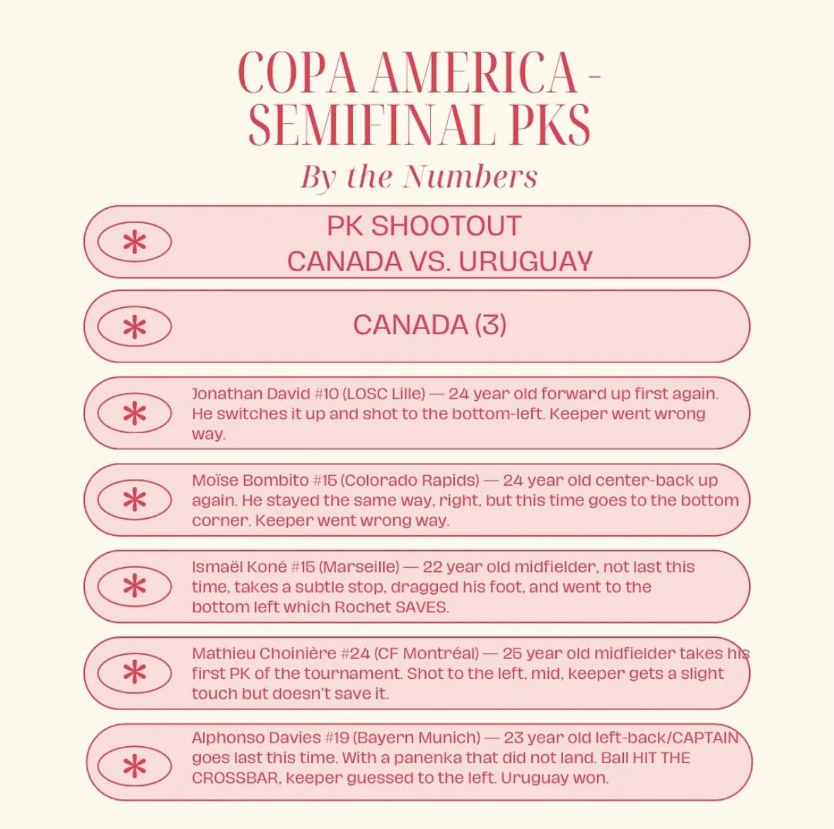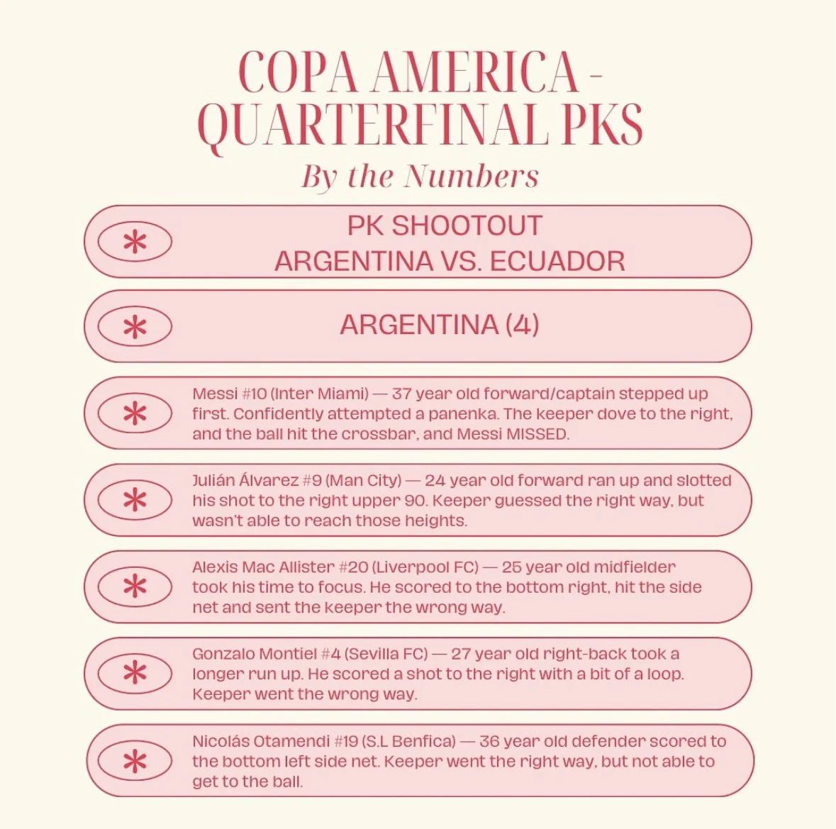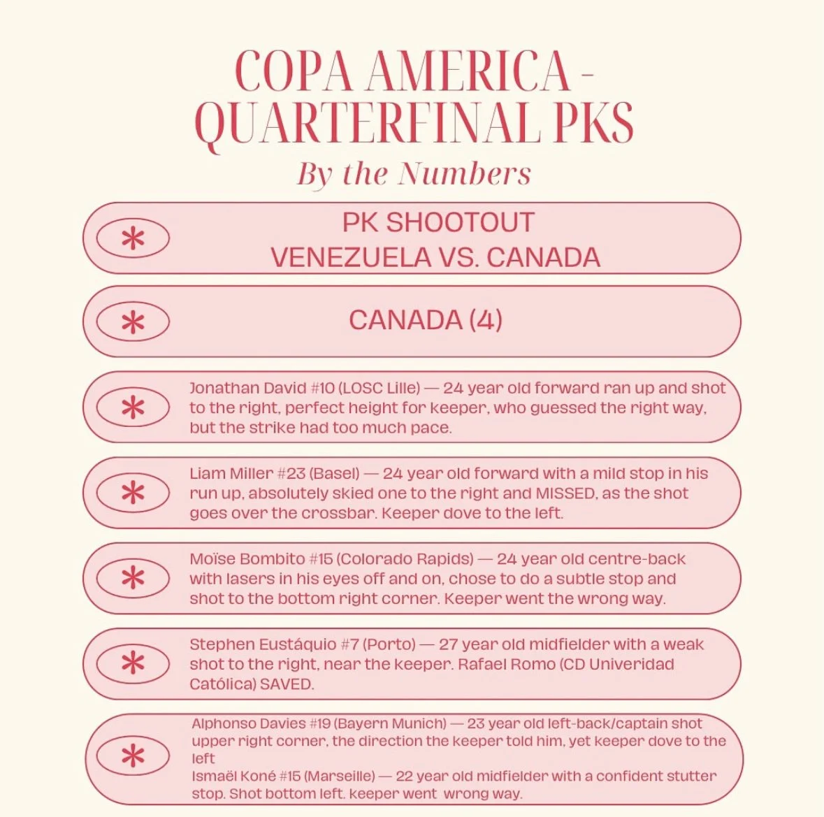 South America’s elite - We highlighted all PK stats, but most notably, highlighted the PK takers to help South American players get the notary and respect they deserve.