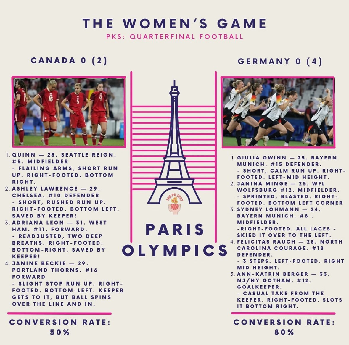 If Berger is on the team expect to see PK saves and a goal by her. Get a keeper who can do both.